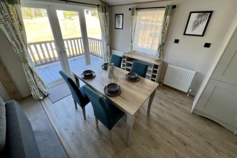 Swift Edmonton Holiday Lodge 40' x 20' 2 bed for sale at Silverbow Country Park in Cornwall with twin French doors and a private decked area.