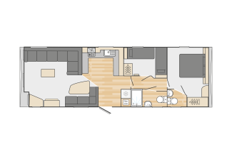 Holywell 21 is a two bedroom caravan. All bedrooms are fitted with a wooden headboard, bedside shelf units, overbed storage and wardrobes. The main bedroom offers a vanity area with mirror and socket and an en-suite WC.